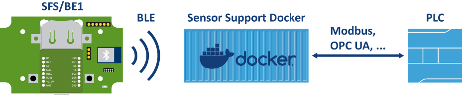 In Docker, the sensor data can be preprocessed and analyzed depending on the application. The respective result is transmitted to the controller using a suitable protocol.